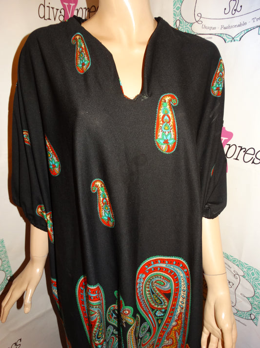 Vintage Tiffany Loungewear Black Colorful Dress Size 3x