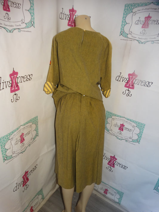 Vintage Three Flags Yellow/Gray 2 piece Skirt Set Size L