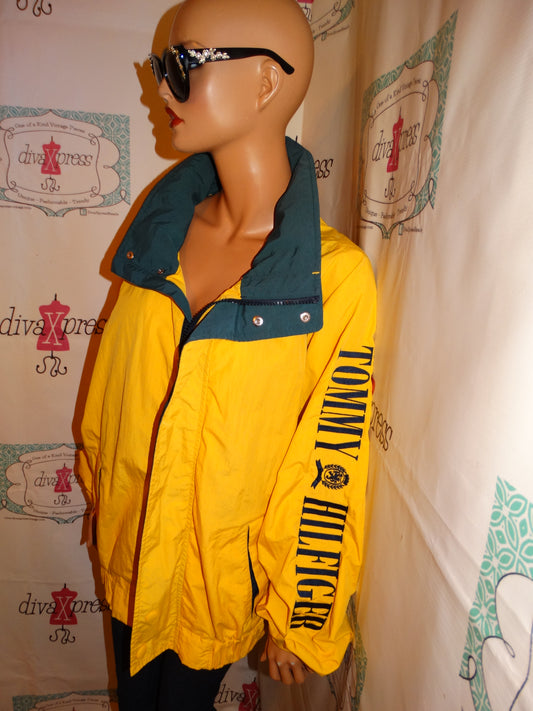 Vintage Tommy Hilfiger Yellow Bomber Jacket With Removable Hood Size XL