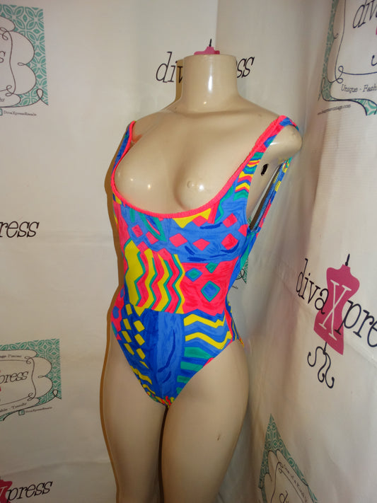 Vintage Tonga Neon Colored one Piece Bathing Suit Size S