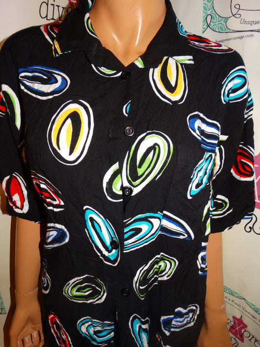 Vintage Trauma Black/White Yellow/Blouse Size L