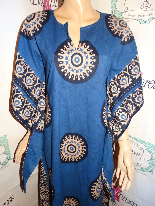 Vintage Tram Blue/Cream Long Asian Sleeve Dress Size S