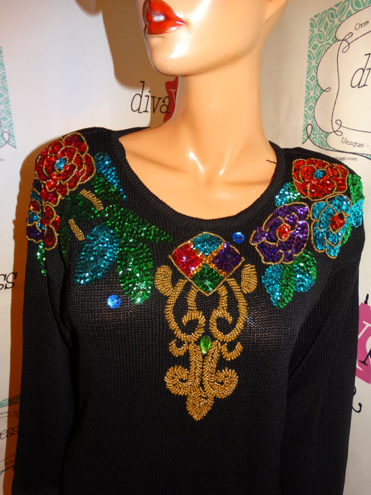 Vintage Trimmings Black Sequins Sweater Size 1x