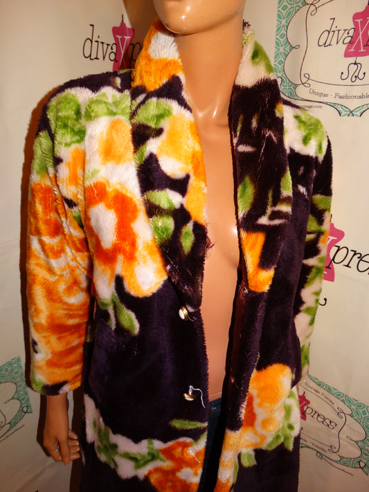Vintage Traveler Purple Floral Faux Fur Coat Size S