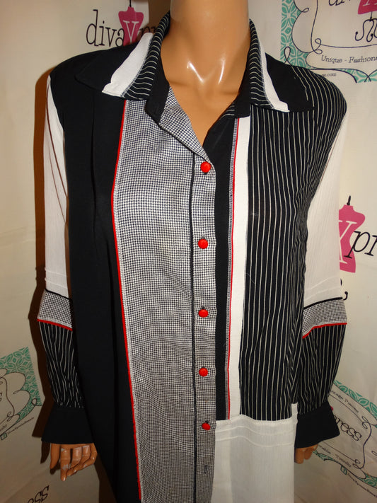 Vintage Van Hannsen Black/White/REd Blouse Size XL
