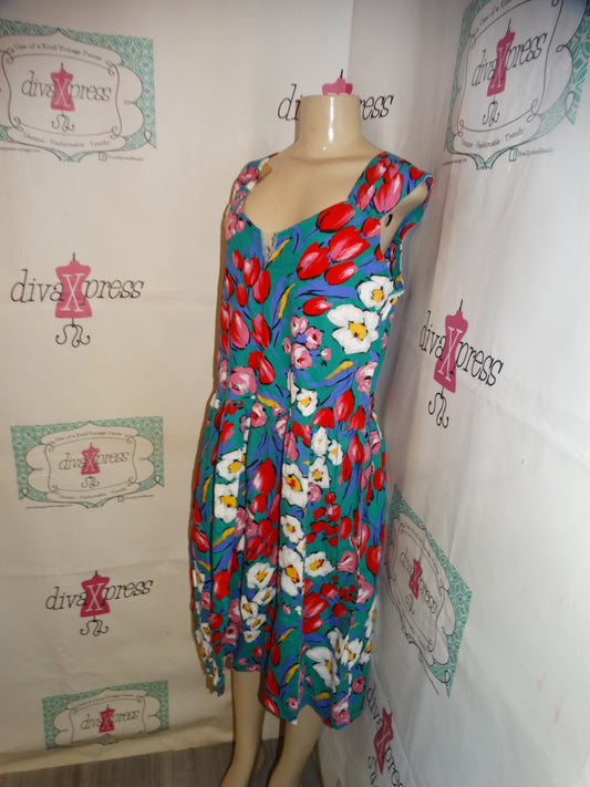 Vintage Vandermere Green Floral Dress Size L
