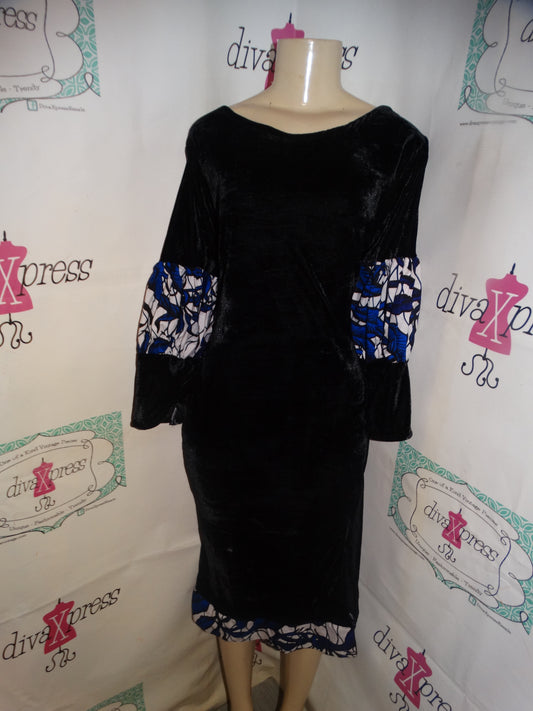 Vintage Velvet Black Blue/Detail Sleeve Dress Size 1x