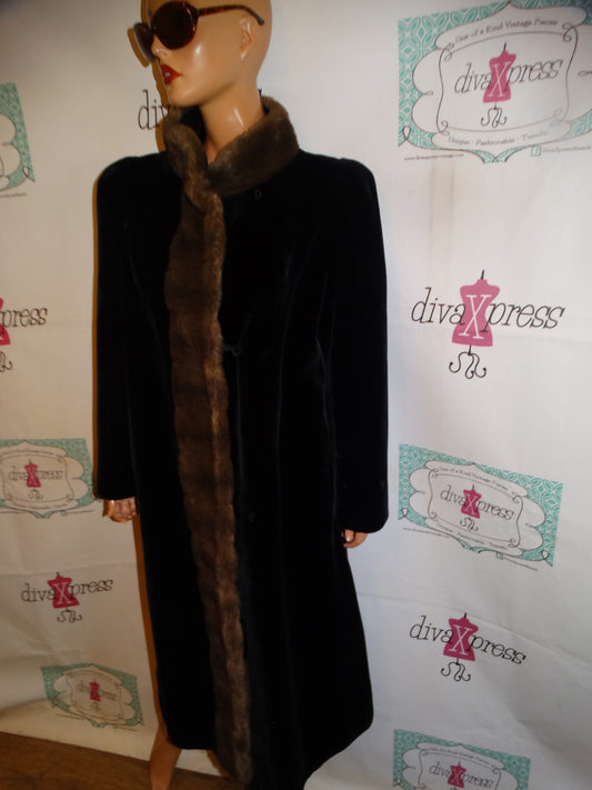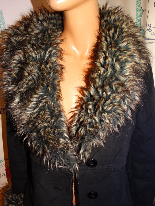 Vintage UTex Black Faux Fur Collar Sleeve Coat Size L