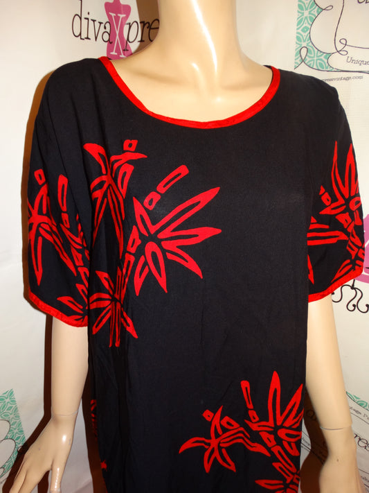 Vintage Image Of Home Black Colorful Floral Dress Size 1x-2x