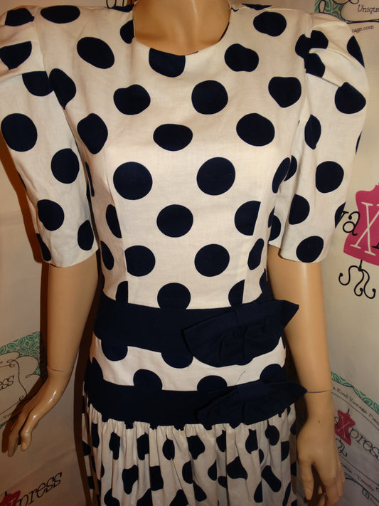 Vintage Irresistible White/Blue Polka Dot Dress Size S