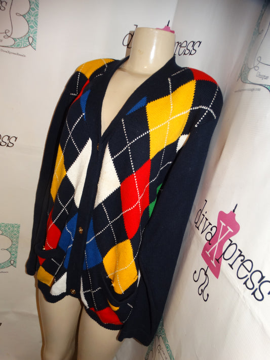 Vintage Intutions Blue Colorful Cardigan Sweater Size L
