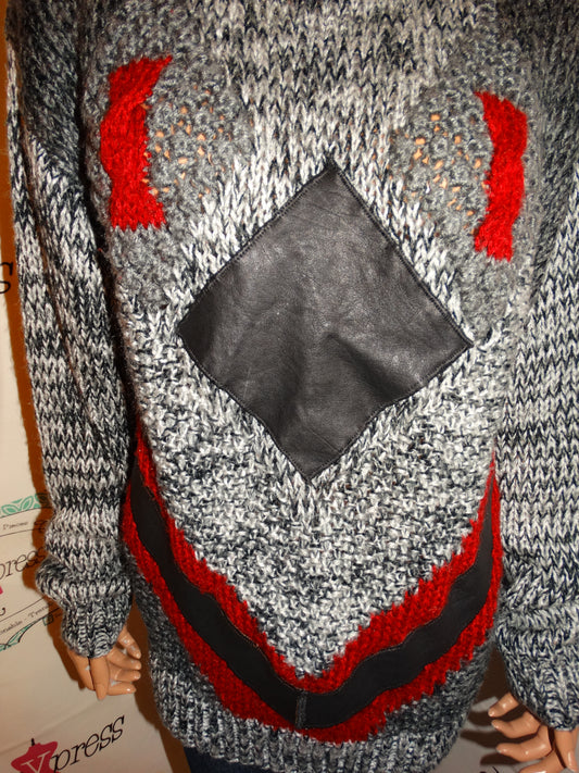 Vintage IT Sport Black/White Leather Patch Sweater Size L