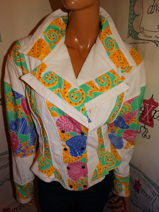 Vintage IIF White Colorful/ Gold Beaded Jacket Size S