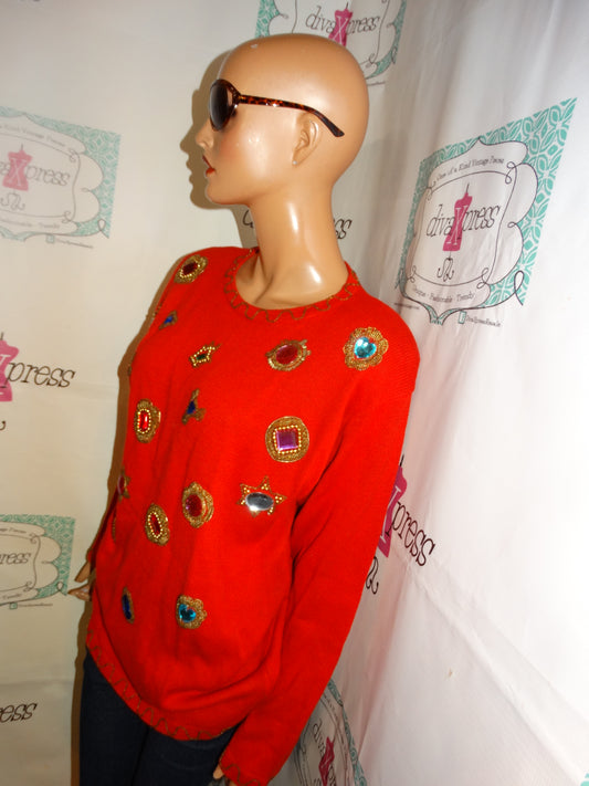 Vintage Victoria Harbour Red Beaded Sweater NWT Size XL