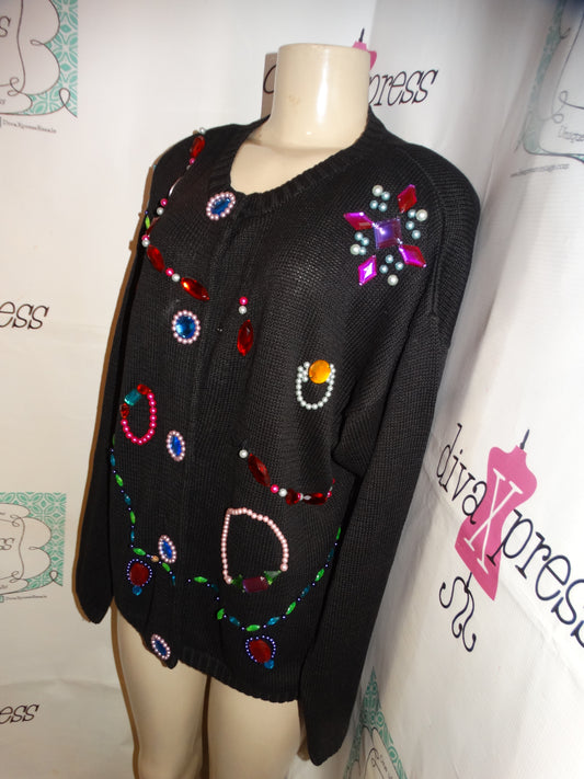 Vintage Victoria Jones Black Beaded Jewel Sweater 1x