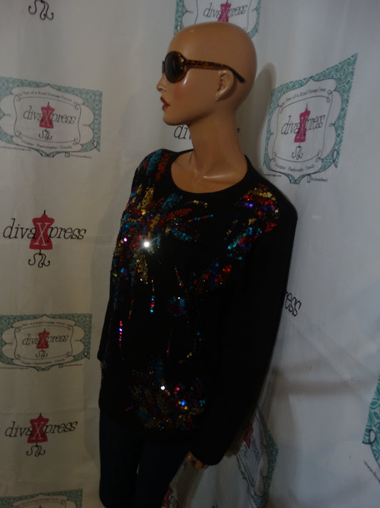 Vintage Victoria Harbour Black Sequins Sweater Size XL