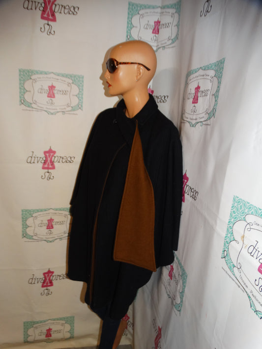 Vintage Wayne Stuart Black/Brown Wool Poncho Size L
