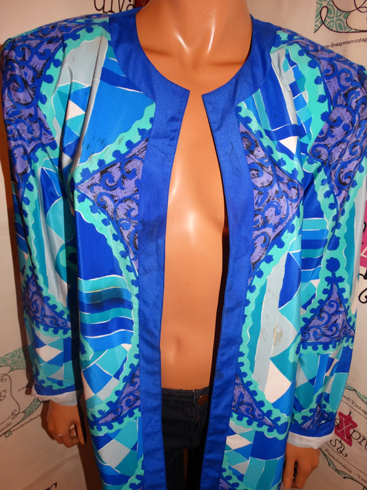 Vintage Wellington Blue/Green Colorful Sweater Cardigan Size M-L