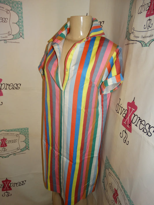 Vintage White Colorful Stripe Dress Size M