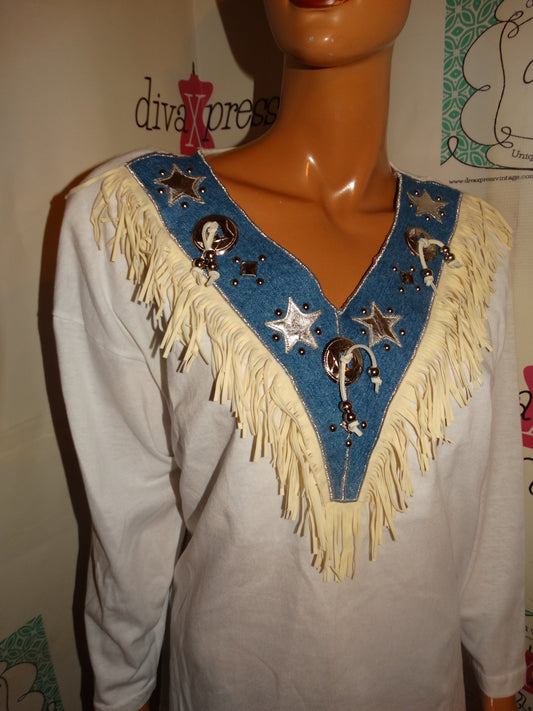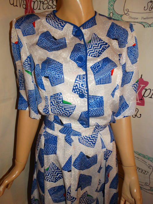 Vintage White/Blue Colorful 2 Piece Skirt Set Size L