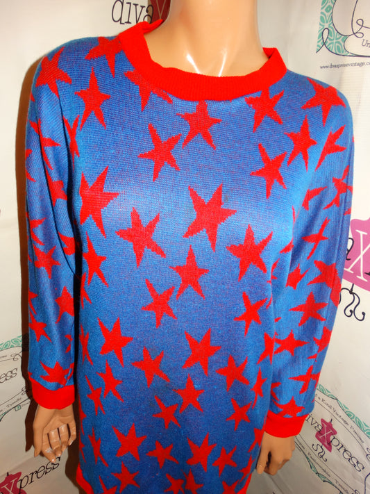 Vintage WildCrest Blue/Red Star Sweater Size XL