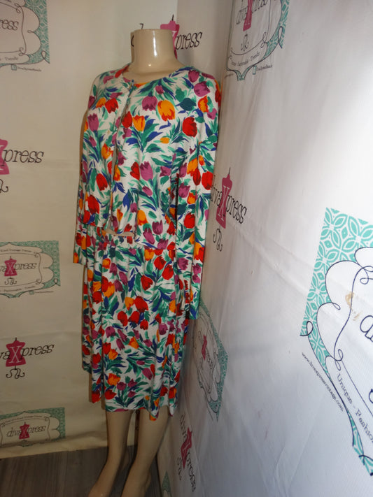 Vintage Willow Ridge White Floral 2 Piece Skirt Set Size XL