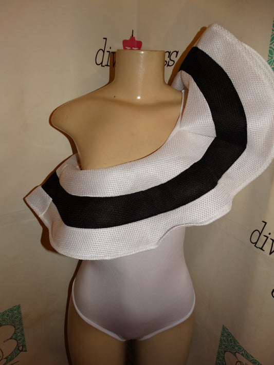 White/Black White Shoulder Body Suit Size S