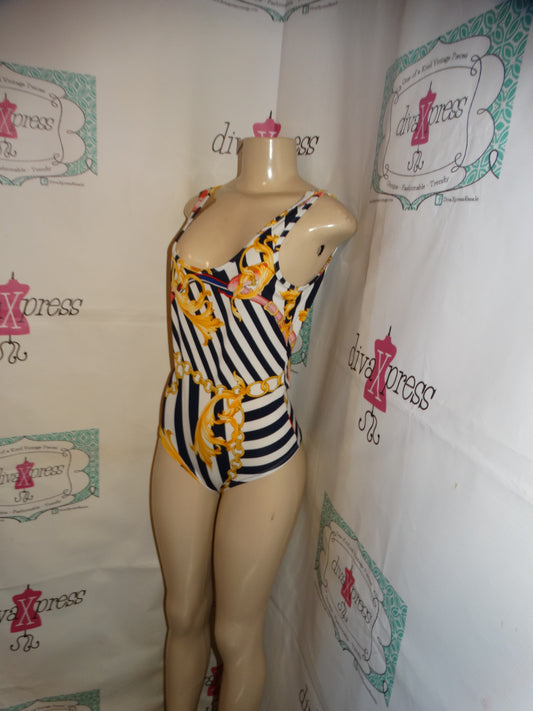 Sold outWhite/Blue Chain Body Suit Size L