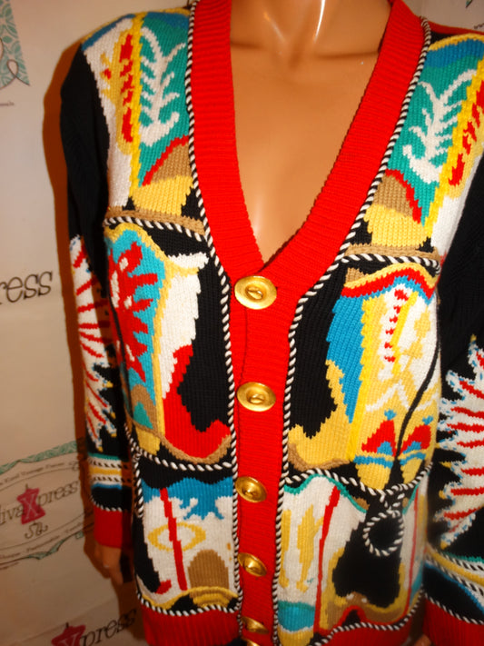 Vintage Jack B Quick Black Yellow Cowboy Sweater Cardigan Size L