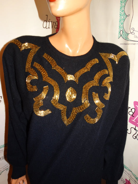 Vintage J.J Browne Black/Gold Sweater Throw Size M