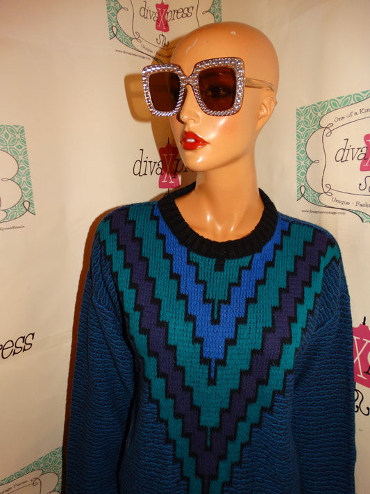 Vintage Jack Stone Blue/Purple Colorful Sweater Size L