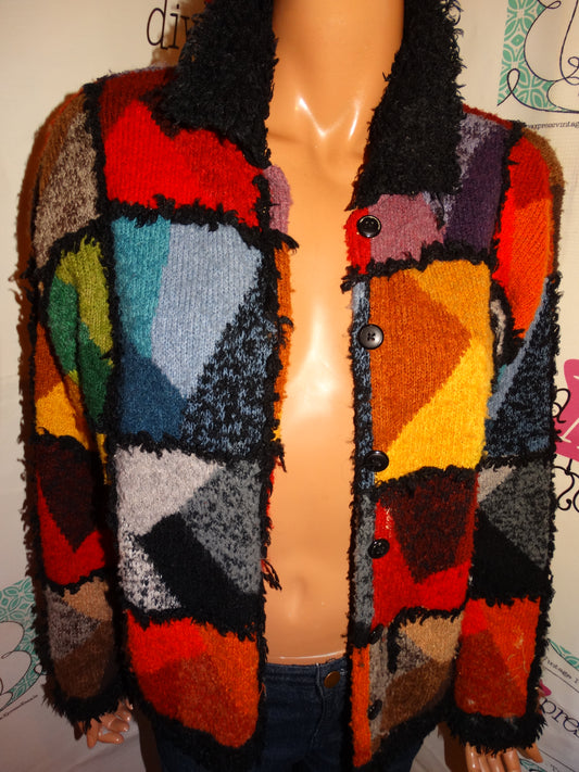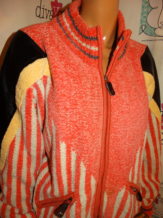 Vintage Jamie Sodeck Peach/Tan Black Sweater Coat Size XL