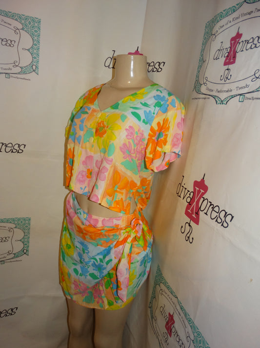 Vintage Jams World Colorful 2 Piece Skort Set Size M