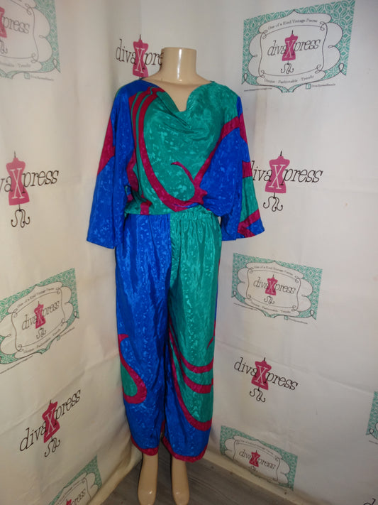 Vintage Janet Chang Blue Colorful 2 Piece Pants Set Size 1x