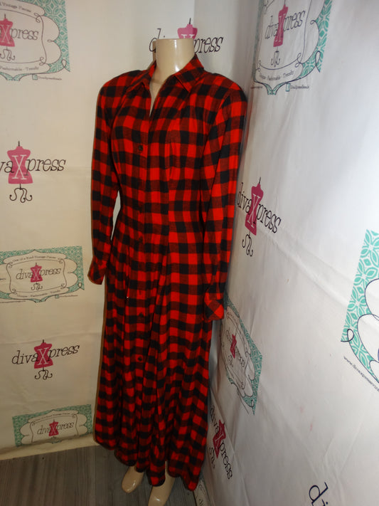 Vintage Jan Barboglio Black/Red Plaid High Shoulder Long Dress Size M