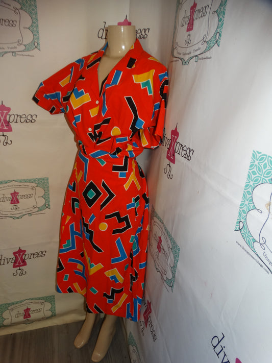 Vintage JBJ Red Colorful 2 Piece Skirt Set Size XL