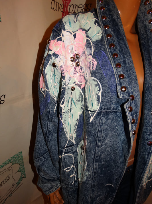 Vintage Jean Acid Wash Beaded Jacket Size 1x