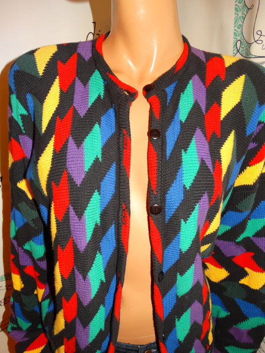 Vintage Jayson Younger Black Colorful Sweater Size L