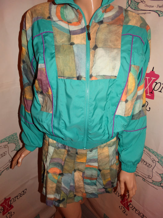 Vintage Jazz/Z Green Colorful 2 Piece Pleated Skirt Set Size S