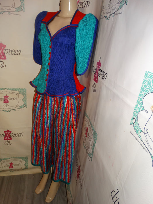 Vintage Jeanne Marc Red/Purple Color Block 2 Piece Size M