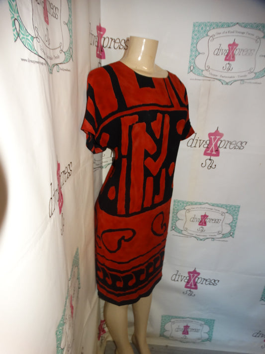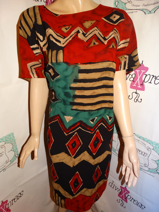 Vintage Jones New York Black/Tan/Green Colorful Dress Size XL