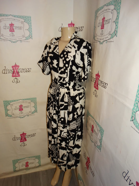 Vintage Jones New York Black/White 2 Piece Skirt Set Size M