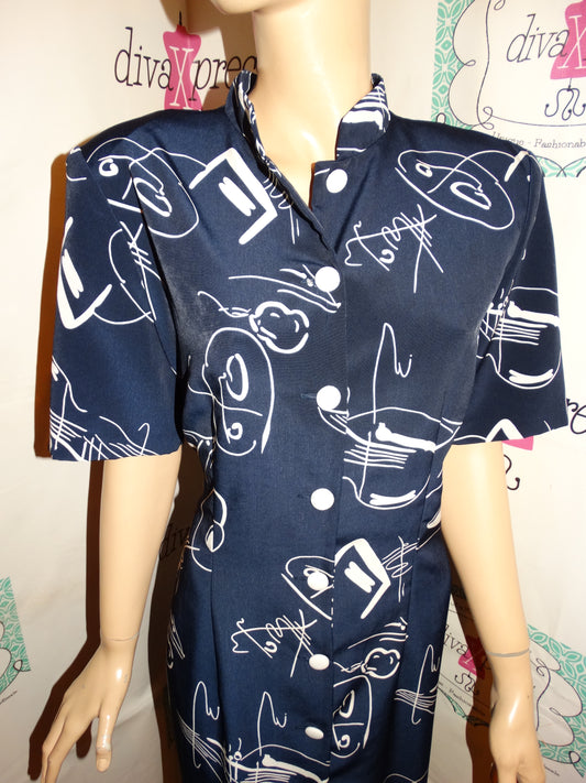 Vintage Jones Of Dallas Blue Face Dress Size M