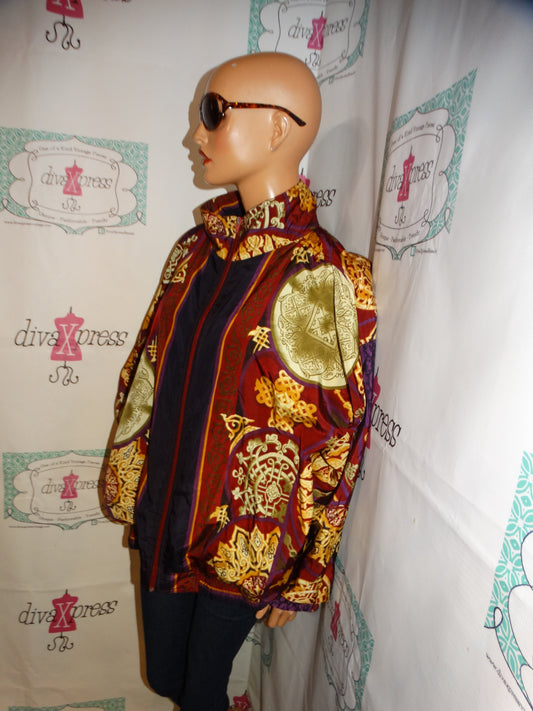 Vintage KAktus Burgundy Chain Design Bomber Jacket Size 2x