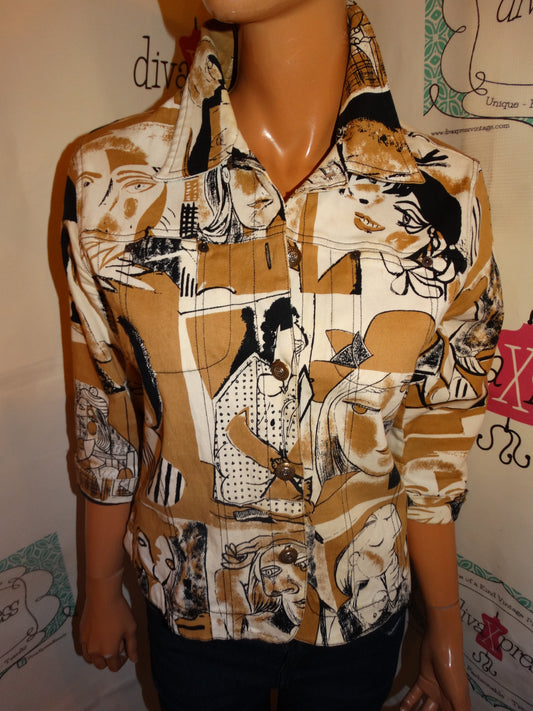 Vintage Karen Kane Yellow colorful Blouse Size M