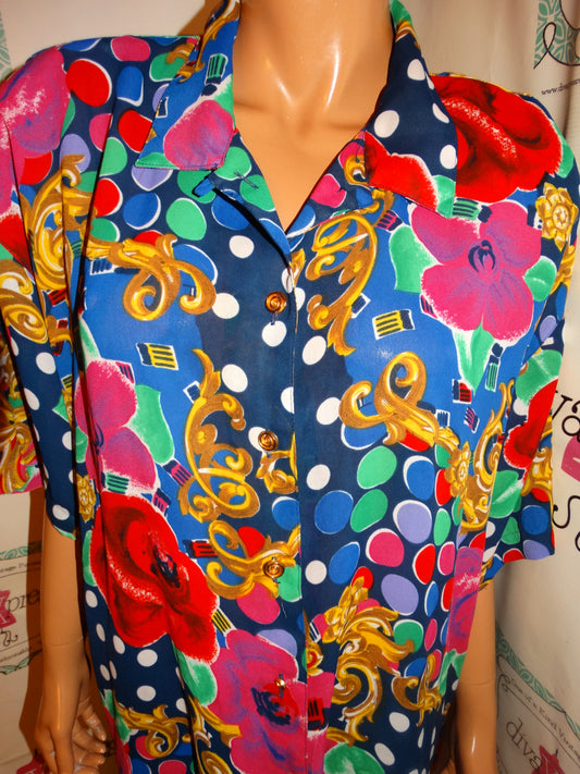 Vintage Kathyn Deene Blue Colorful Polka Dot Size 2x