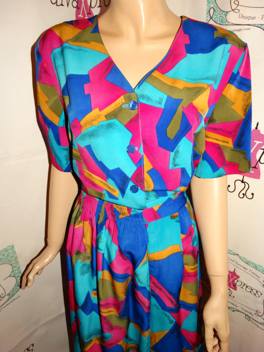 Vintage Katie Brooks Colorful 2 Piece Skirt Set Size M