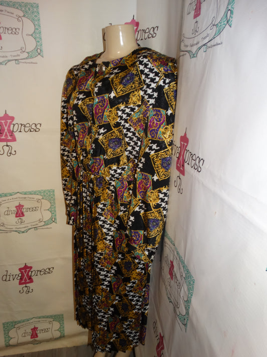 Vintage Lady Carol Black/White Gold Colorful Dress Size 1x