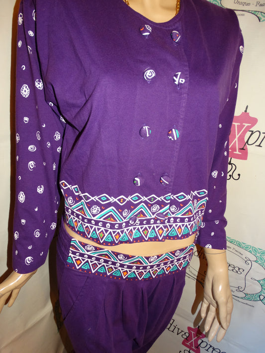 Vintage La Belle Folette Purple/White 2 Piece Pants Set Size M