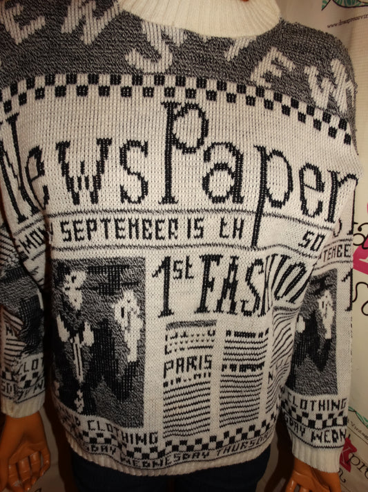 Vintage La Vista Black/White Newspaper Sweater Size L